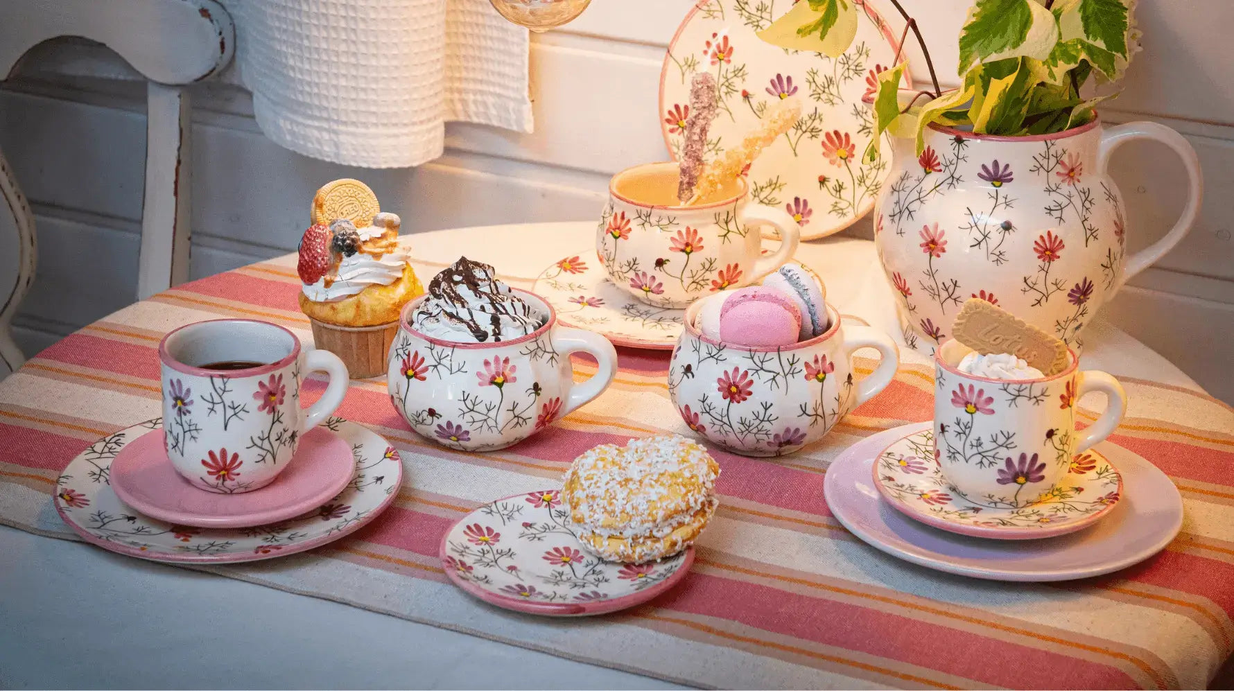 Pille Virág Páros Kávés Bögre Kistányérral AKCIÓ